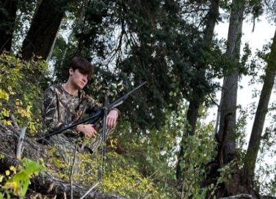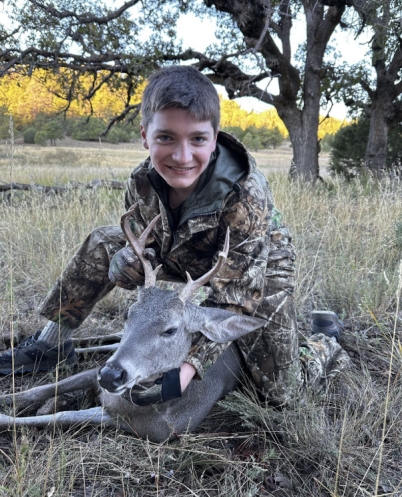 On opening morning my son was set up before sunrise. About twenty minutes after daylight a buck stepped out of the brush about 165 yards away. He made a clean shot.